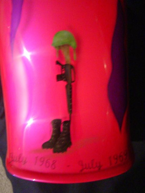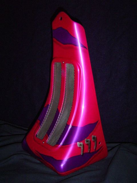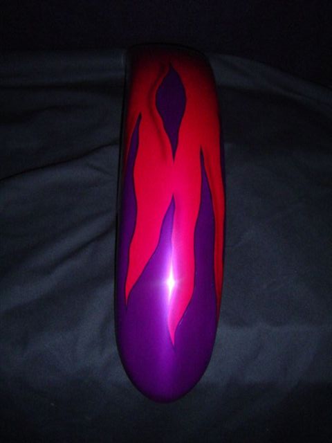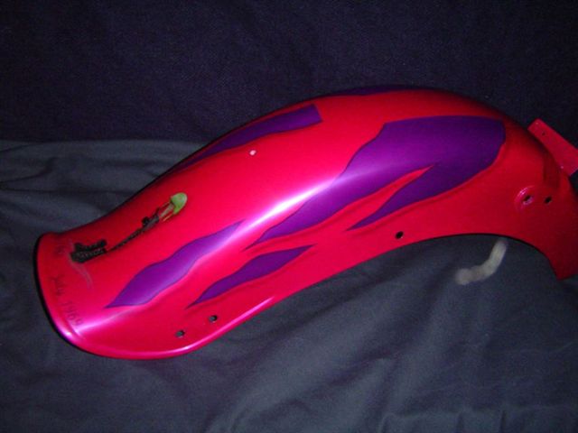 This Jimi Hendrix inspired FLH Harley belongs to ED of Dayton, Ohio. The complete bike including frame is done in hot pink pearl, and passion pearl. Check back this spring for assembled pictures.
