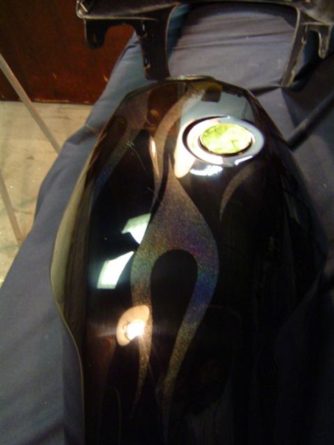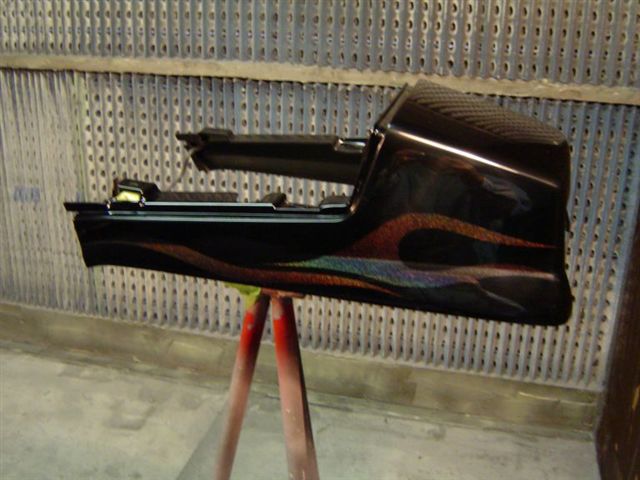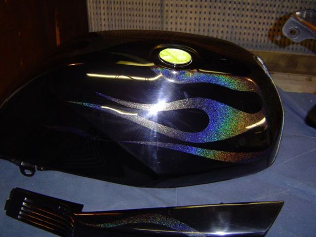 Flames. The dash assembly has been painted in R&M matte black. |