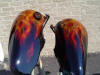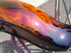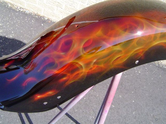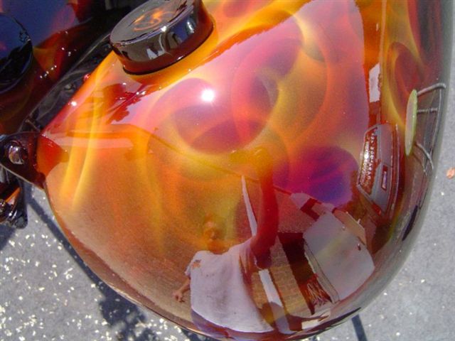 Dave Garner of Dayton, Ohio will be heating up the streets on his custom painted True Fire Harley Davidson. Be sure to check out Dave's out law class Katana here. Colors used: House of Kolor: Black, Molly Orange, Chrome Yellow Kandies: Red, Tangerine, Pagan Gold, Passion Pearl |
