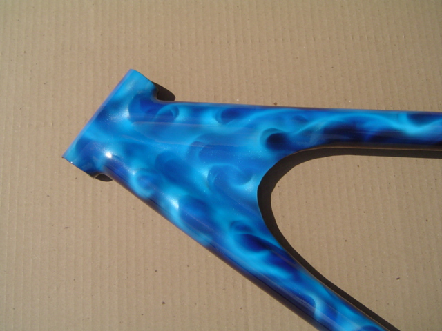 Efren, the chef of New York, New York, asked that his custom bicycle be airbrushed to match his cooking flame.