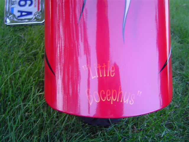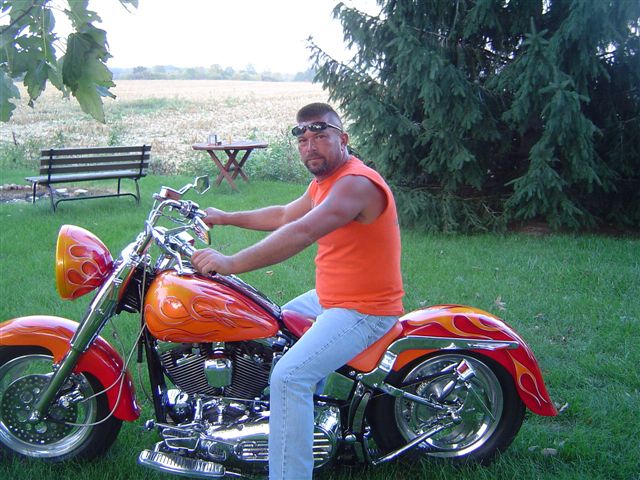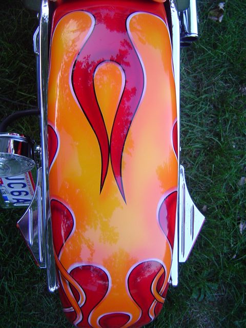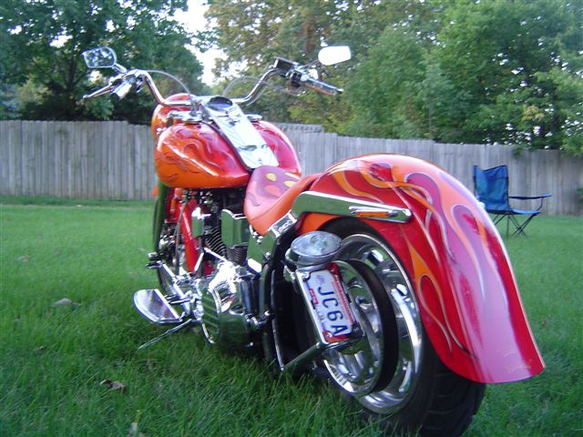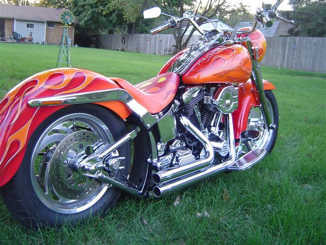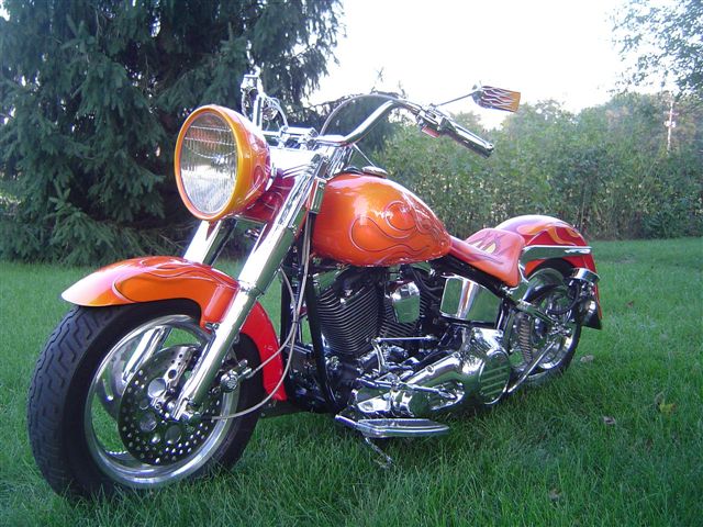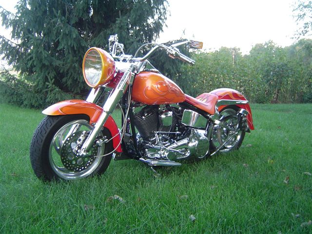 Todd's fatboy. New and improved! Original paintwork in 1996. Refreshed rear fender. Original 1929 model A ford headlight ( pretty cool -huh?).