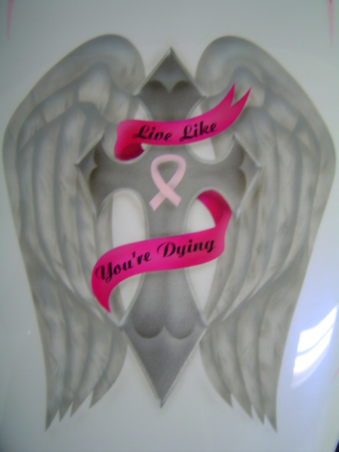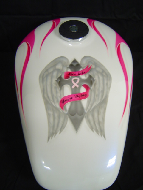 Marcia of Ky , fighter / survivor of breast cancer. Not only a tribute to herself, but all the ladies on her Harley Davidson Sportster.